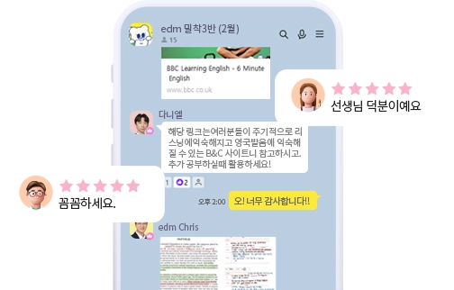 밀착관리반이 있는 점이 좋아요! 다른 곳은 대부분 2시간 단위의 과외 수업이어서, edm으로 결정하게 된 건데 정말 잘한 선택이었던 것 같아요
